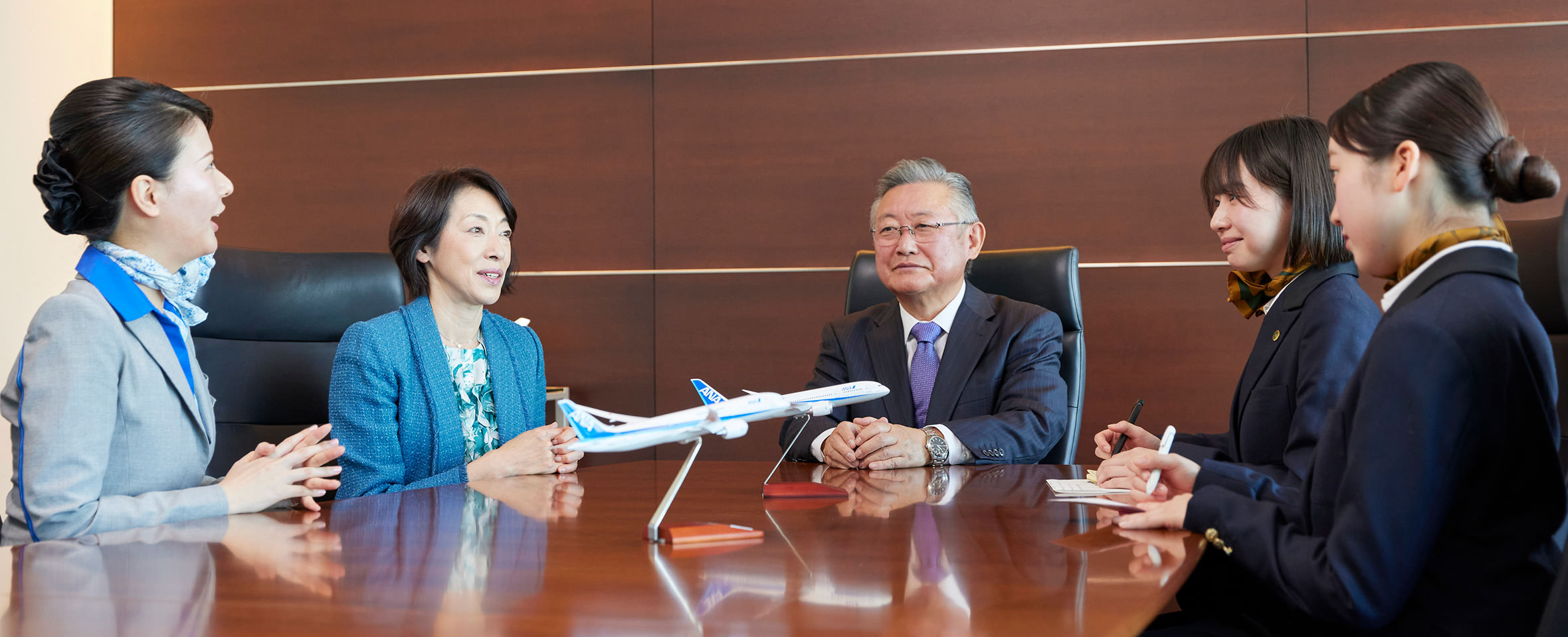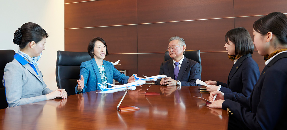 国際線就航当初から客室乗務員としてゼロからサービスをつくり上げてきたお一人でもあり、華々しいキャリアを積まれてきた山本取締役 副社長と