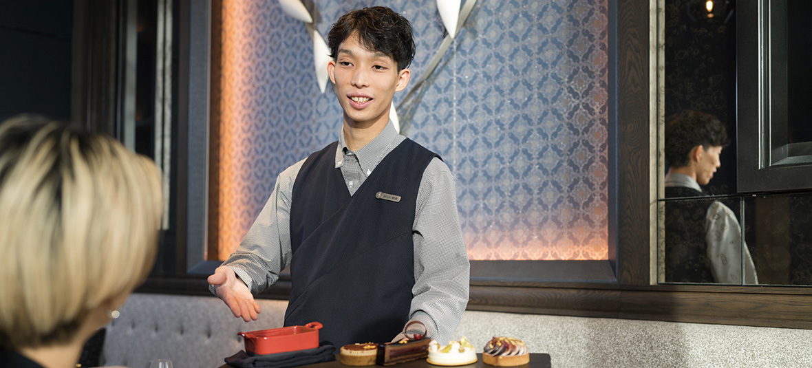 一方で、知識面での課題やお料理やお飲み物に精通しているゲストへの対応に直面することもあります。配属当初はカクテルやワインに関しての知識が浅く、お客様にメニューについて尋ねられても期待に沿えない対応をしていた時もありました。現在は日々学びを重ね、知識を増やして対応力を高めています。