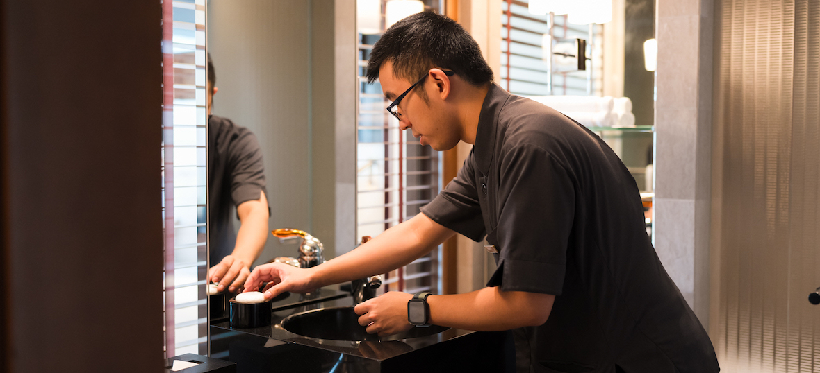 蔡 在学中にホテル見学ツアーでマンダリン オリエンタル 東京を訪れ、SDGsへの取り組みに感銘を受け入社を決めました。アメニティにリサイクル素材を使用し、全客室に持続可能な「ノルダック」ウォーターを導入するなど、ラグジュアリーとサステナビリティを両立している姿勢に魅力を感じました。