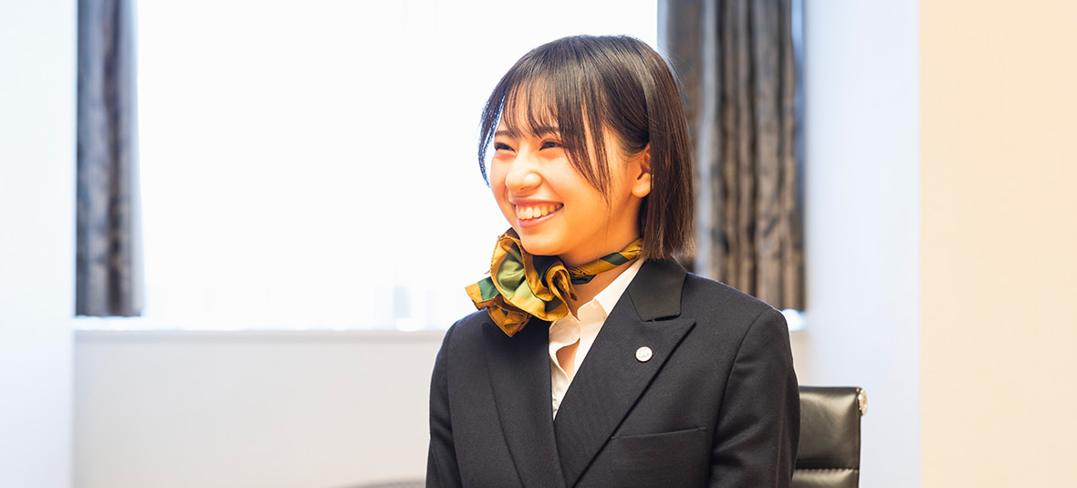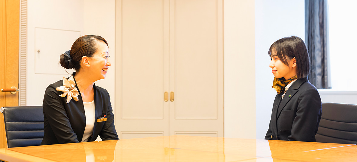 私は元々ホテルの仕事を目標としていたのではなく、何でもトライしたいという思いで業界も限定せずに幅広く就職活動をしていたのですが、その中でもホテルニューオータニの採用面接を担当していた人事の方がとてもフレンドリーで、緊張するはずの面接が楽しくてあっという間に終わってしまって。そんな歓迎してくださる人柄に魅力を感じて入社を決めました。