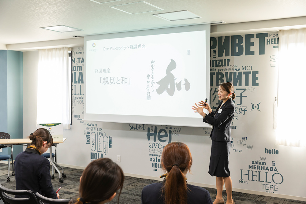 東京虎ノ門のラグジュアリーホテル「The Okura Tokyo(ホテルオークラ東京)」。優雅さを伝える日本の美と、きめ細かく気遣う日本の心、極上の日本らしさでお客様をもてなすその魅力を人事ご担当者様から直接伺いました。おもてなしの最高峰と称される理由を学生たちは感じることが出来る貴重な機会でした。