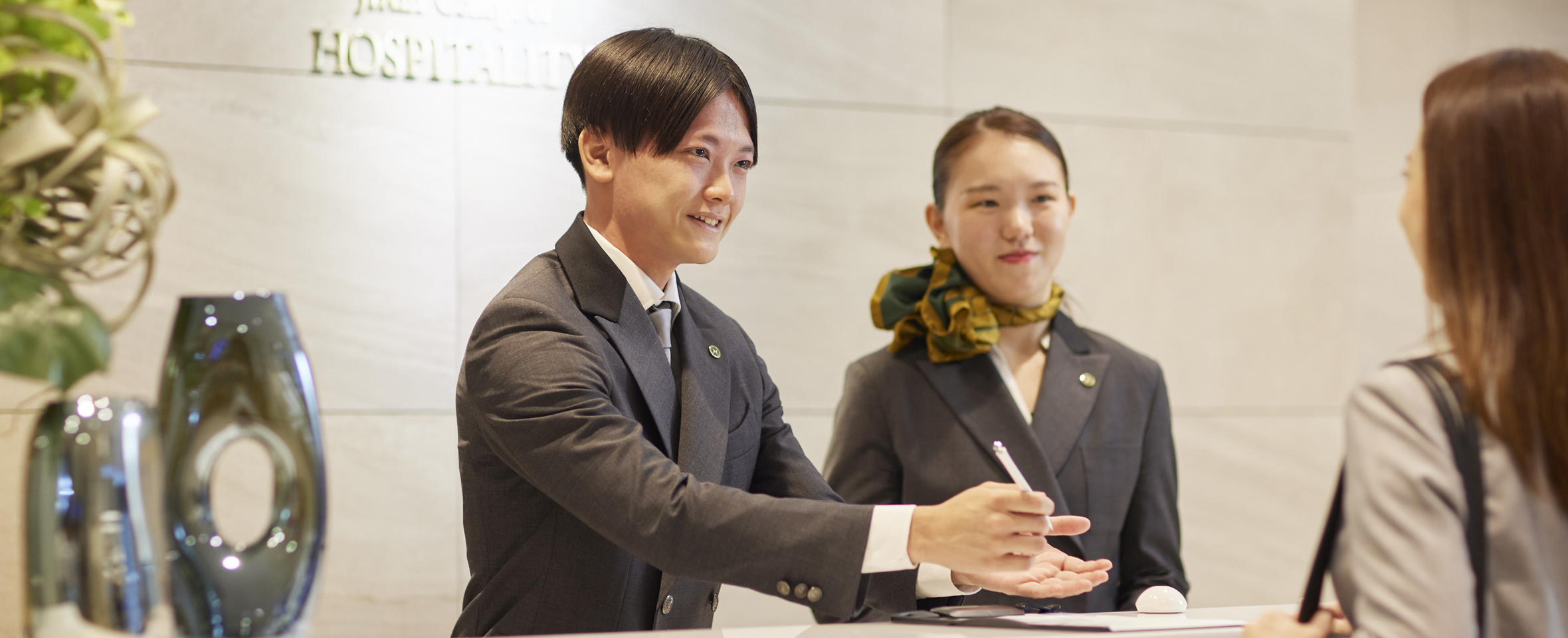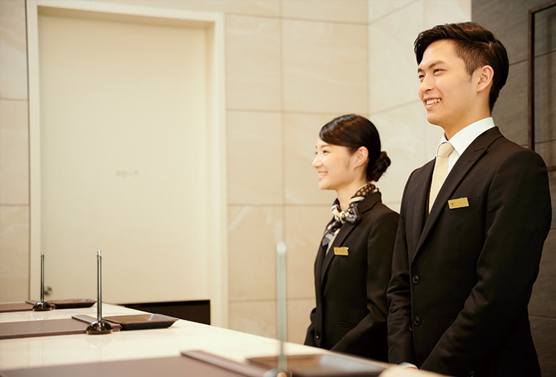 受付、宿泊予約、案内、会計などに分けられます。外国人訪問客も多く宿泊されるので、語学力も必要となります。