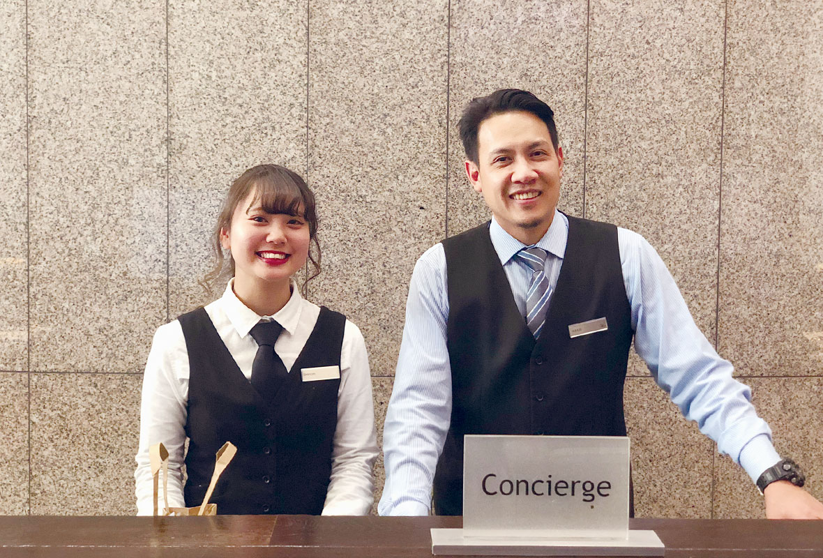 ホテルのロビーに常駐し、観光案内、様々な手配、チケットのご予約、お客様のご相談、サービス全般を引き受けます。