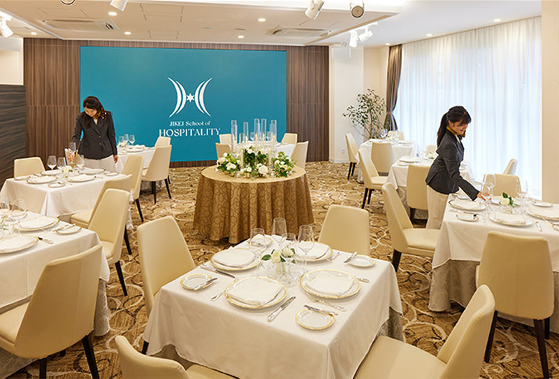 フォーマルなパーティシーンを演出するバンケットルームで、洗練されたサービススキルを磨いてください。